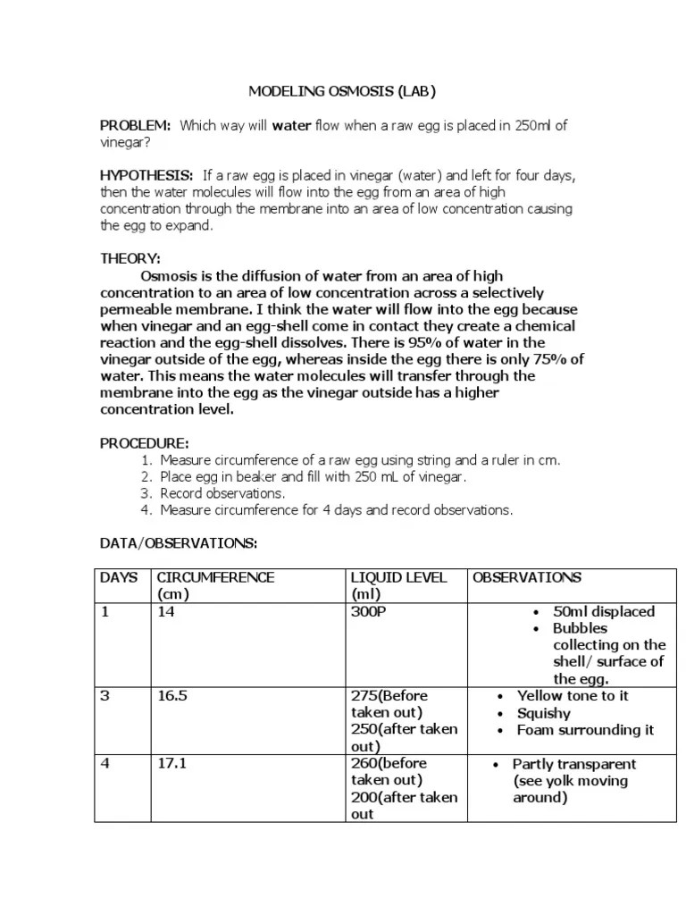 Egg Osmosis Lab Worksheet - Osmosis Egg Experiment Hands On Osmosis Lab -. In the egg osmosis lab we are going to use the egg as our cell. In the case of this lab the discussion will be centered on passive transport. Which solution is a hypertonic, hypotonic, and isotonic solution and how does it affect a cell using osmosis? Osmosis through the cell membrane of an egg. How to have fun with diffusion and osmosis.